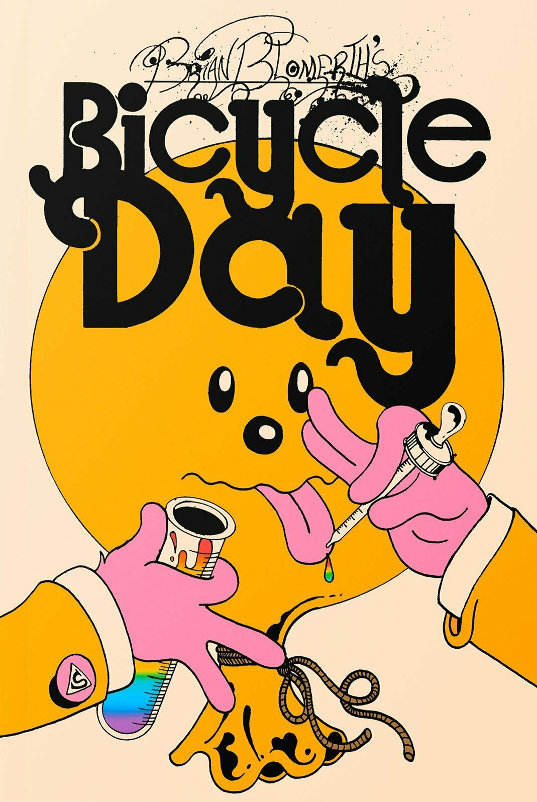 Illustrator, musician and self-described “comic stripper” Brian Blomerth has spent years combining classic underground art styles with his bitingly irreverent visual wit in zines, comics, and album covers. With Brian Blomerth’s Bicycle Day, the artist has produced his most ambitious work to date: a historical account of the events of April 19, 1943, when Swiss chemist Albert Hofmann ingested an experimental dose of a new compound known as lysergic acid diethylamide and embarked on the world’s first acid trip. Combining an extraordinary true story told in journalistic detail with the artist’s gritty, timelessly Technicolor comix style, Brian Blomerth’s Bicycle Day is a testament to mind expansion and a stunningly original visual history.